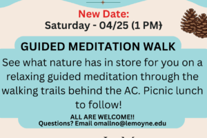 Join us for a guided meditation walk on the trails behind the Athletic Center followed by a picnic lunch.