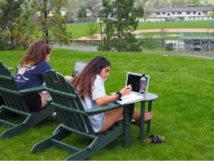 One of my favorite spots is the area by the Science Center facing Nelligan Hall. If you are unfamiliar with where I am talking about, let me explain. This area has an opening at the top of the hill that has tables and chairs overlooking our baseball field, the Heights, the turf field, and the Athletic Center. When it gets warm out, you can sit there and do some homework or even just binge watch a few shows on Netflix or Hulu, all while taking in our beautiful campus. This can also be a place to hang out with your friends, sitting around talking and laughing together. During the winter, this is a place where you can take your sled and sled down the hill for some winter fun. Regardless of where your interests lie, this spot can be used for so many different things, making it one of my favorite places on campus.