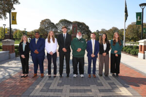 The first was with Jim Joseph ‘83, Ed.D. ‘23, executive dean of the Madden College of Business and Economics, and Frank Marrullo, director of the Risk Management and Insurance (RMI) Program. It took place at the College’s fall Open House. Rappold recalled that Joseph and Marrullo spent nearly 30 minutes with him, learning about him and what he wanted out of his college experience. The second occurred later, at an event for admitted students and their families, and was with President Linda LeMura, Ph.D. Rappold recalled that after he and Dr. LeMura spoke for and took a photo together, she removed the small Dolphin pin she was wearing and pinned it on him, saying, “Will, I think you’re going to be a Dolphin.”